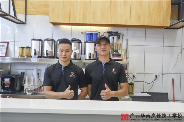 在广西华南烹饪技工学校学习的过程中,他们不仅掌握了传统饮品的的制作,自己还研究了许多网红产品,如今两人的产品逐渐被更多人熟知认可,两个人也有了一些积累。今年夏天,两个人的第一家奶茶店“宫茶”正式开门营业。