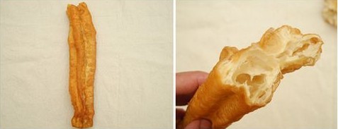 2、这种油条问题更大了,建议大家一定要注意,千万不要吃这种油条。颜色看起来就有点不正常,黄的发白,凉了以后有点发黑的感觉。这种油条不仅添加了明矾,而且用的都是问题油,如地沟油、老陈油等等炸出来的。