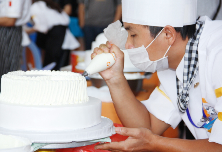 走进广西华南烹饪学校西点精英教室,这里没有油烟、没有一蹿老高的吓人火苗,没有沉重的铁锅……,这里只有优雅的裱花袋,诱人的奶油,和扑鼻而来的甜蜜味道,当然还有众多养眼的美女帅哥在专心致志的做蛋糕……,这样的场景是不是曾经出现在梦中呢?西点做为当今社会最流行、最受欢迎的“美丽”职业,受到了越来越多的年轻朋友的亲睐。这个专业紧跟时尚潮流,是一个充满活力和创意的专业,尤其适合青春活力的美女们学习。