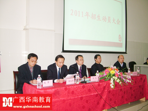 会议由校长助理郑文军主持,会议首先宣读了我校的聘任通知,聘请徐新亚律师为华南教育集团法律顾问,随后宣读长安集团公司对华南教育集团2011年的招生工作要求及市场部的人事调整通知。宋凡校长在会上作重要讲话并布署2011年度招生工作,一是全体教职员工须统一思想,提高认识,努力完成2011年春季招生任务,学校继续实行全员参与招生,人人树立责任感和危机感。二是明确任务,科学谋划,加大宣传投入、加大地面推广增强招生力度,认真抓好招生工作每个环节,广大教职工要认真学习领会学校的专业设置、招生政策和优惠办法,实事求是地宣传学校,热情报务新生和家长,让学生和家长感受到学校的独特魅力;向学生、家长充分展示学校的办学成果、办学优势和专业特色等,以良好的对外形象和雄厚的办学实力吸引更多学生到学校就读。三是进一步加强内涵建设,营造良好职教氛围,让学生树立责任心和荣誉感,树立榜样来影响和带动招生。