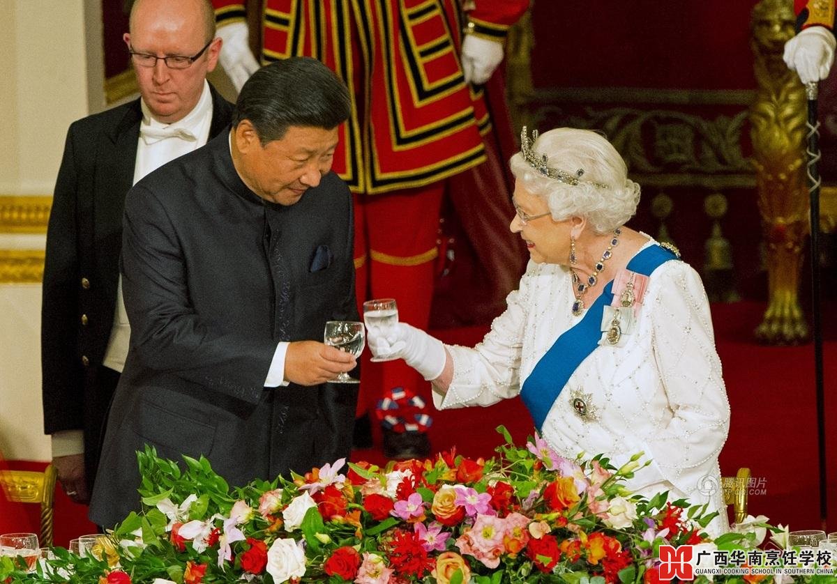 英国国宴被认为是世界上最隆重的国宴之一,在英国外交中扮演重要角色。习近平访问英国期间,英国女王用国宴款待习近平主席,女王不仅亲自过目所有的菜单,并且还会对花饰摆设等细节来进行监督。