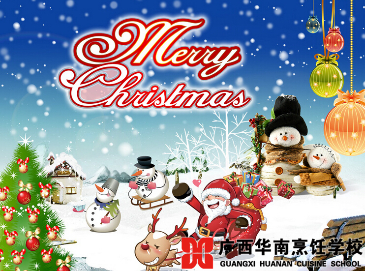 当午夜十二点的钟声响起,神秘的圣诞老人会驾乘由12只驯鹿拉的雪橇,挨家挨户地从烟囱进入屋里,然后偷偷把礼物放在好孩子床头的袜子里,或者堆在壁炉旁的圣诞树下。在这个温馨团圆的日子里,圣诞老人要鹿不停蹄的将礼物送到每一个小朋友的手中,为他们送去惊喜,送去平安,送去新一年的希望。在这里,广西华南烹饪学校全体教职员工祝大家圣诞节快乐。