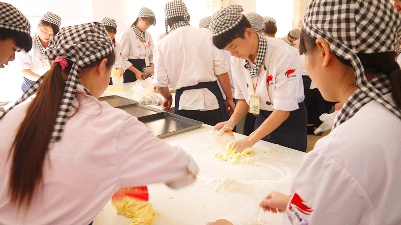 对于没有基础的学生,学校会在学生入学的前三个月,学生集中进行翻锅与刀功等基本功训练,考核合格后,进入下一阶段的学习。经过三个月的基本功训练,学生无论是刀功技能还是翻锅技能,都可以达到行业用人标准。其中,学生可以根据原料的不同性质(脆嫩、软韧、老硬)采用不同的运刀方法,切成截面光滑、棱角分明的块、丁、粒、片、条、丝、末、茸等料型,块、丁分明,片薄似纱,丝可穿针,翻锅技能也已经可以完全达到灶台炒菜的各项要求。