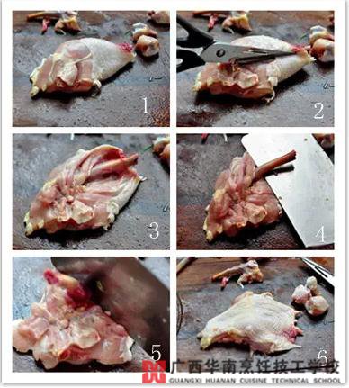 2、从肉薄的那边剪开,深度抵达鸡骨头。