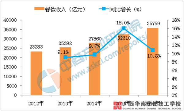 ¡¡¡¡2012-2016Öйú²ÍÒûÐÐÒµÊÕÈëÔö³¤Ç÷ÊÆ