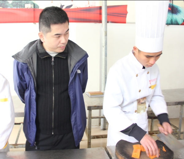 近日,南宁沃顿国际大酒店(五星级)到广西华南烹饪学校开展招聘面试会,现场南宁沃顿国际大酒店人力资源部汪经理还现场观看了同学们的刀工面试。
