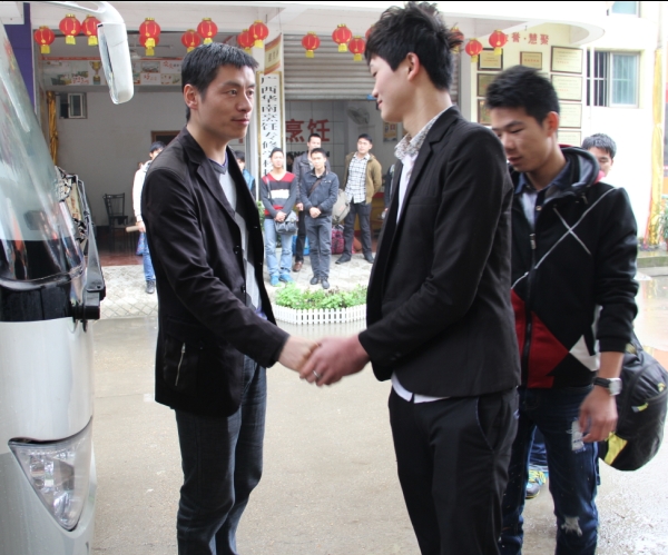临行前一一和老师握手