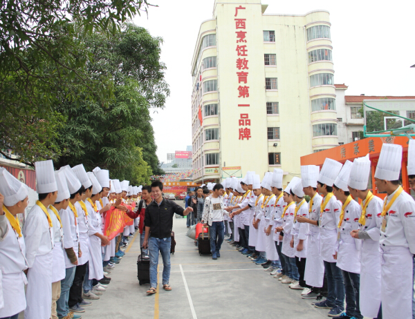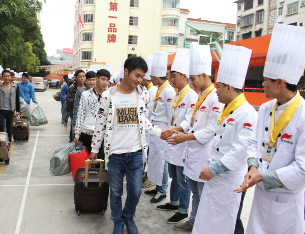 秋季是果实成熟的季节,在这秋收的季节广西华南烹饪学校毕业学子也迎来了甜蜜的收获。11月17日上午,广西华南烹饪学校明秀校区热烈欢送我校优秀毕业学子赴深圳、上海、中山、南宁等地工作。在赴广东中山喜来登大酒店工作的学子们按耐不住心中的喜悦,满怀着激动的心情奔赴新的征程,欢送现场学弟学妹们在旁热烈的鼓掌欢送。欧老师和就业主任陈新操,为学子们送上工作前的祝福。