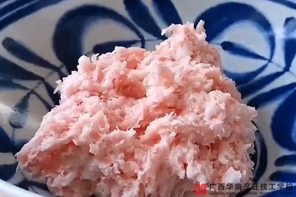 2、买回来的五花肉用清水清洗干净切成小块,放入绞肉机中绞碎装碗备用