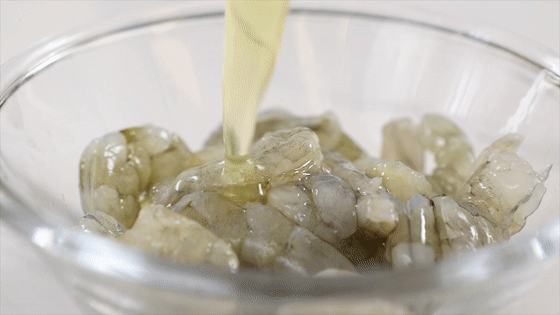 3、虾仁放入碗中,加入蛋清,料酒,盐。