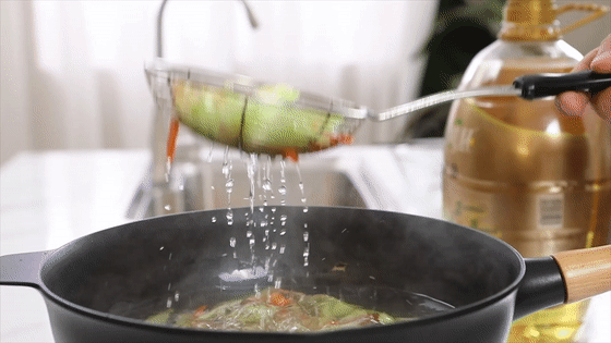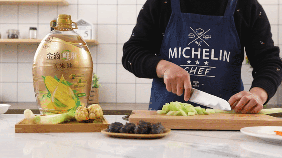 8、锅中适量玉米油,油七成热,倒入所有蔬菜,大火翻炒1分钟。