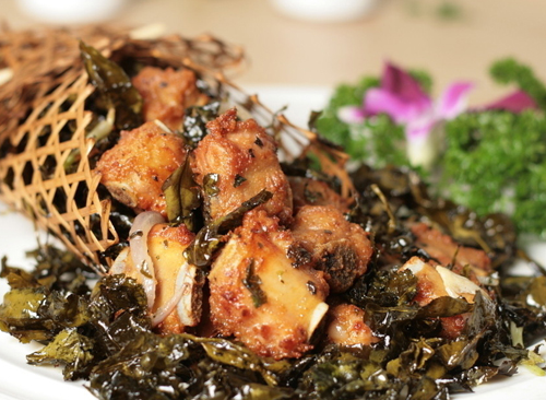 5.ÁíÆð¹øµ¹ÈëÓÍÉÕÈÈ£¬·ÅÒ»°ëÅݹýË®µÄ²èÒ¶´ó»ðÕ¨ËÖ£¬È¡³ö£¬ÈöÔÚÅŹÇÉÏ¡£