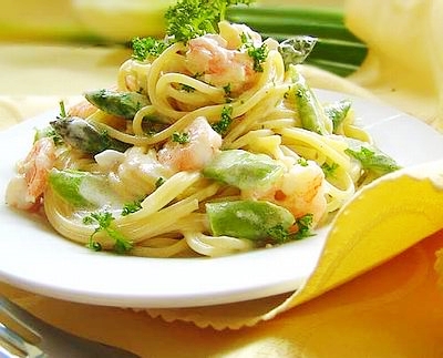 用料:鲜虾、芦笋、葱、小苏打、食盐、淀粉、蚝油