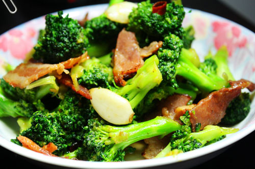 西兰花炒培根的做法: