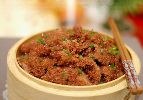 粉蒸肉(又名面面肉),为中国传统的待客名菜。“粉蒸肉”旧时盛行于沔阳州(包括天门、洪湖、潜江、沔阳),素有“蒸菜之乡”之美誉,是著名的“沔阳三蒸”之一。粉蒸肉以主料带皮花肉加稻米和其他调味料制作而成,粉糯而清香,酥而爽口,成菜时以老藕垫底,色泽粉红,软、嫩、甜、香、咸,更为添色;有肥有瘦,红白相间,嫩而不糜,米粉油润,五香味浓郁,滋味丰富。