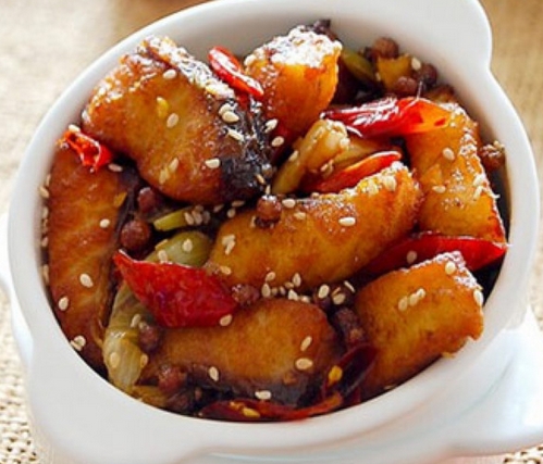 草鱼、淀粉、香菇、胡萝卜、青辣椒、泡椒、蒜、姜、白酒、盐、老抽、香醋、糖