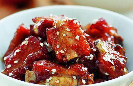 4、炒锅中留底油,倒入香醋、白糖和1汤匙黄酒,搅拌均匀,用中火加热至沸腾,继续搅拌至汤汁红亮黏稠,倒入炸好的猪小排翻炒均匀即可。