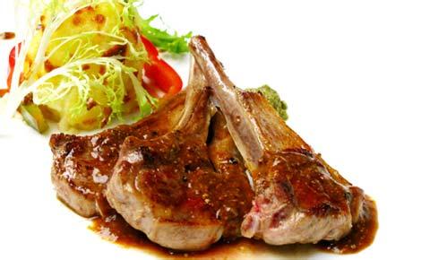 3、烧热平底锅,先放入带骨且有肥肉的小羊肉先煎一下,逼出其油脂。