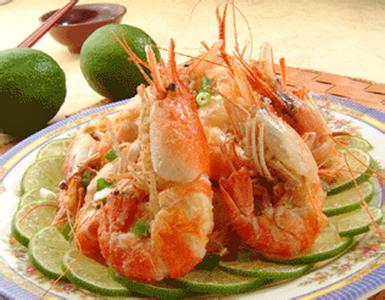 材料:柠檬1个、虾1斤、指天椒、香葱、油、盐、糖、豉油