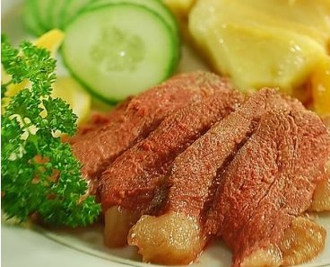 用料:鸭肉2块、橙2个、蜂蜜50克、姜粉2茶匙、辣椒粉适量