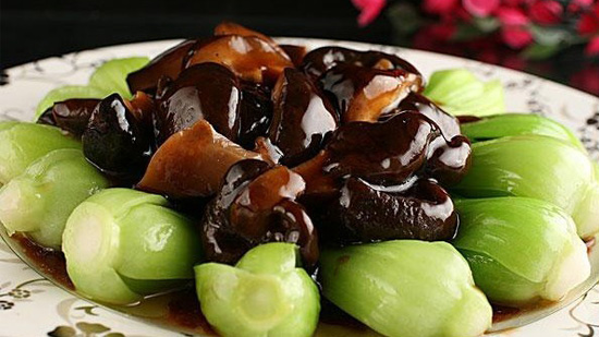 7、均匀的淋在盘子里的香菇和菜心上即可。