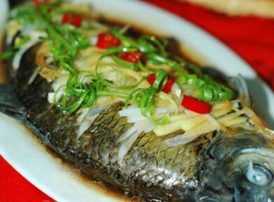 4¡¢´Ð½ª»ðÍÈË¿ÈûÓã¶Ç×ÓÀ½ªËâÆ¬£¬ÆÌÅÌ×Óµ×£¬Ïã²ËºìÀ±½·ÔÚÓãÉíÉϰں㬿ªË®ÉϹø£¬´ó»ðÕô°Ë·ÖÖÓ£¬²»Òª½Ò¿ª¹ø¸Ç·ÅÖÃÁ½·ÖÖÓ¡£