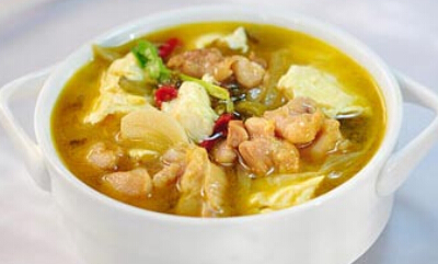 原料:鸡肉、酸菜半棵、嫩豆腐一盒。