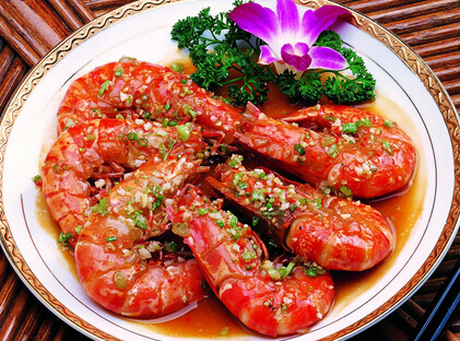 7、最后放入大虾,大火稍微收汁,撒葱花装盘。