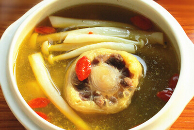 辅料:盐3克、小葱2根、料酒20毫升、枸杞子少许、生姜3片