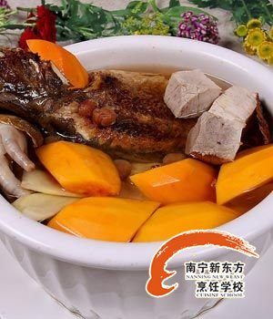南宁新东方烹饪的叮咛:青木瓜含有丰富的木瓜酉每,对胸部发育有很大的帮助,另也可依自己的喜好,搭配肉类等。