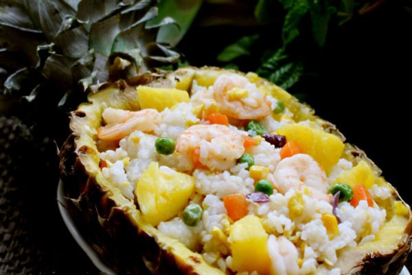 菠萝炒饭跟菠萝饭是有区别的噢,菠萝炒饭,是用大米饭,加入自己喜欢的果疏块、海鲜仁、坚果仁等,用少许油炒而成。而菠萝饭是用糯米、紫糯、菠萝肉混合其他果干蒸制而成。根据个人口味不同,可以选择自己喜欢的做法来制作,下面为你推荐一种菠萝炒饭的做法。