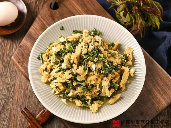 5.起锅热油,放入搅拌好的香椿鸡蛋翻炒