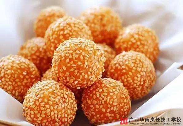 今天,广西华南烹饪技工学校老师为大家带来一道炸麻球的做法,快去学起来吧!