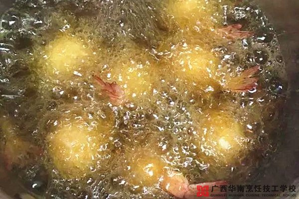 油锅预热至七成,把虾球放进去炸至表面金黄,捞出后放在吸油纸上,吸取多余油脂,沾着番茄酱或千岛酱即可。