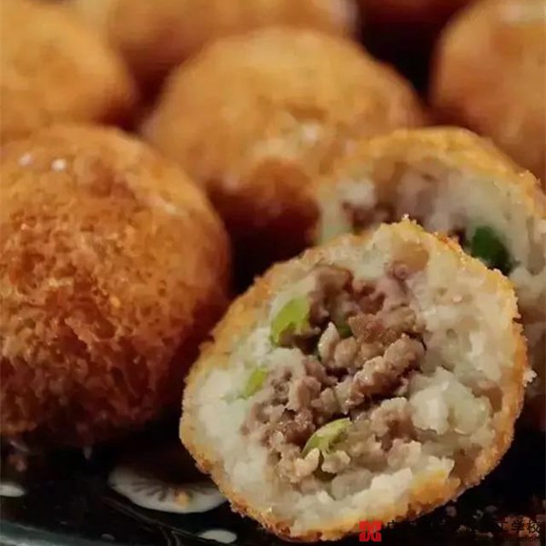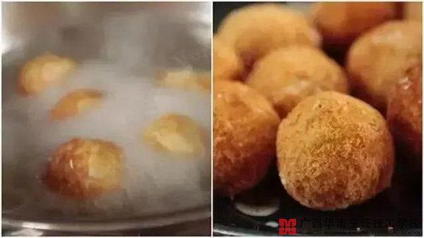 4.滚一层玉米淀粉后,下热油炸5分钟,看到团子变成金黄就能捞起。