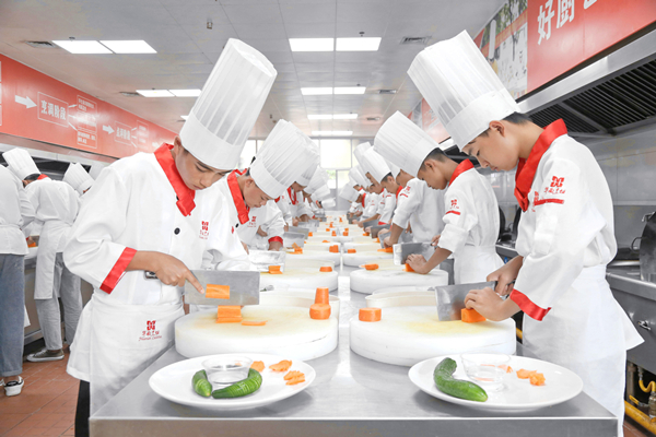现代化操作大厅、互动式模拟餐厅、刀工大厅、翻锅大厅、模拟厨房、西点教室、西餐教室、面点教室、调酒教室……先进的教学设备,完善的基础设施,力求让学生在这里掌握精湛的技术。
