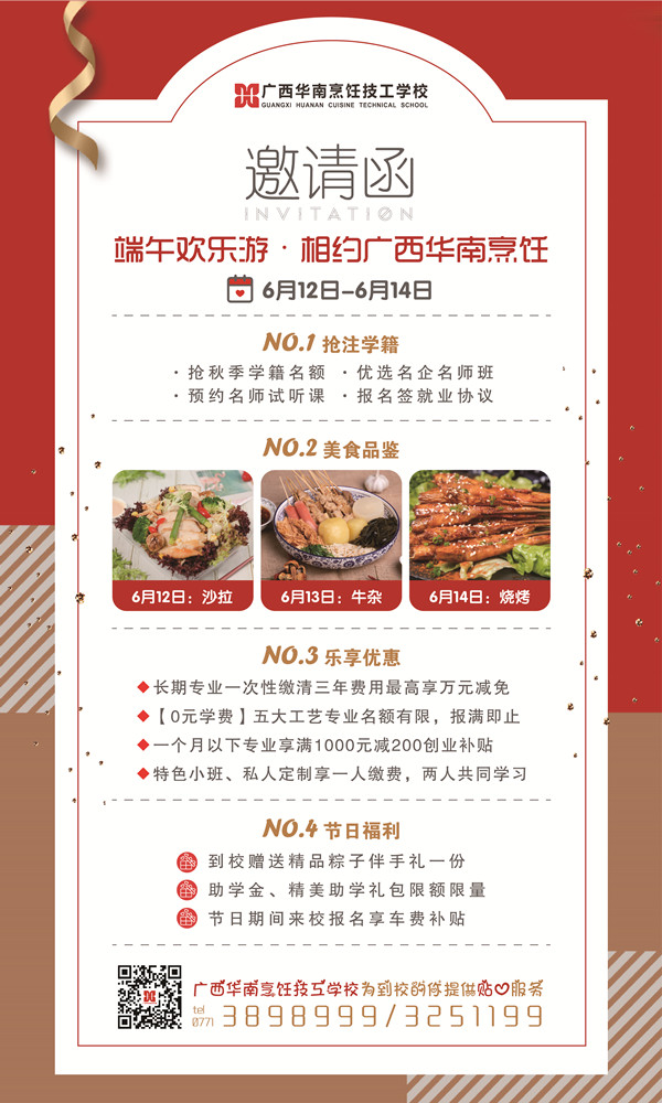 唯有美食与爱不可辜负,历来节假日最令各路学员与美食爱好者慕名而来的便是华南烹饪的美食品鉴会,这个端午小假期,沙拉、牛杂、烧烤,色香味俱全,每天不重样,带你开启一场美食与味蕾的交汇之旅。赶紧预约名额到校参观试吃咨询吧~