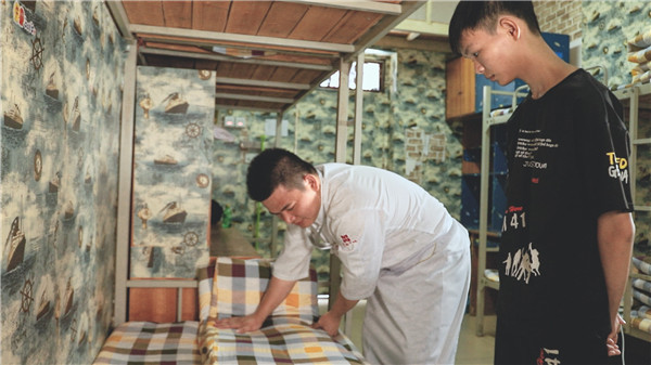 我来到属于我的新宿舍、新床铺,班主任细心地帮助我整理床褥。成长,就是从点滴小事开始的。