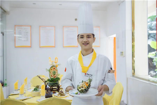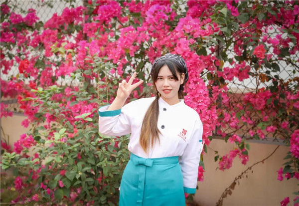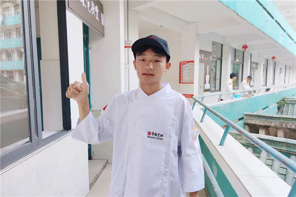 潘明进是班级里年纪最小的一个,经常受到老师和同学们的照顾。说到学厨的由来,他说是叔叔介绍来的。叔叔是华南烹饪1998年入学的学生,凭借在华南学到的扎实的厨师技能以及多年的努力,如今已经是好有缘餐厅的厨师长。他也希望自己未来也能像叔叔一样,成为一个出色的厨师长。