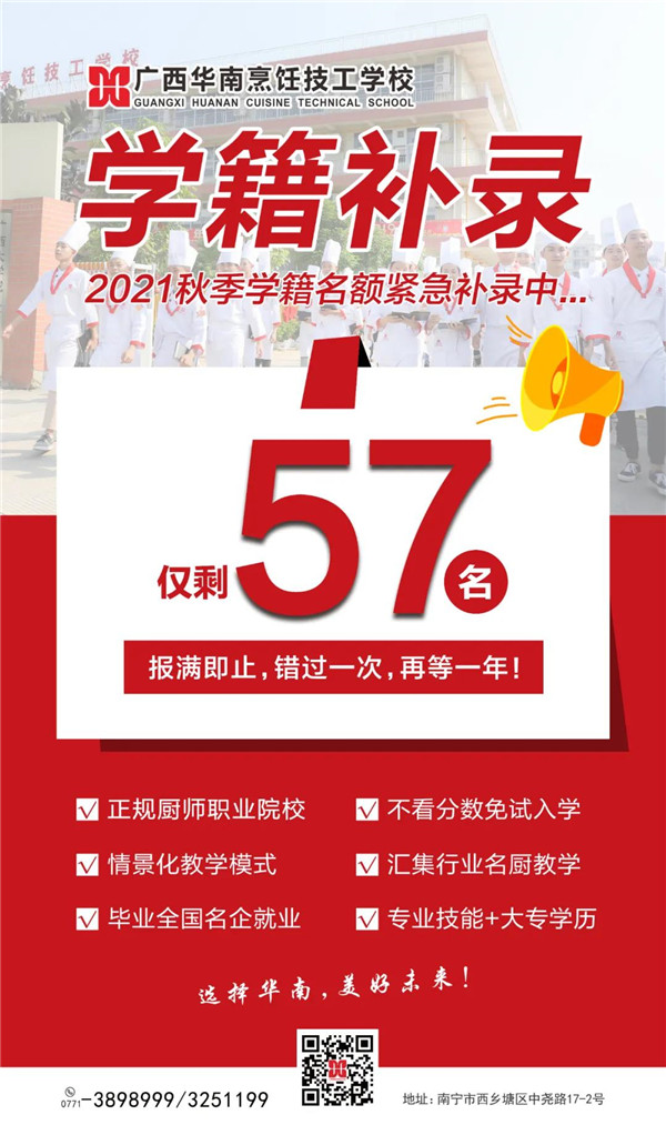 广西华南烹饪学校有着雄厚的师资力量,优秀的教师团队,他们能根据同学们的自身情况,因材施教,让同学们高效率学习!