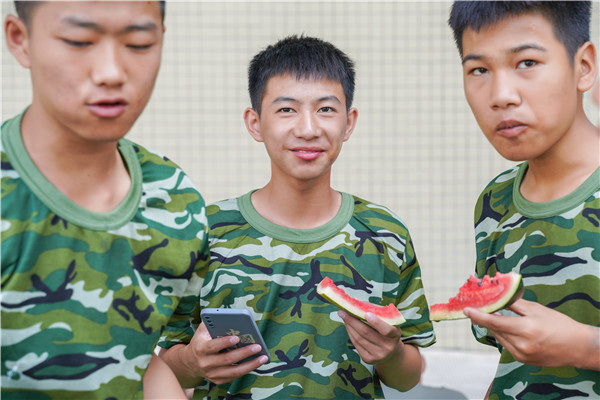 在训练中,同学们虽苦虽累,但依然精神抖擞,充满激情。