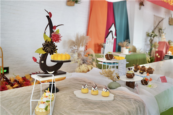 竞赛作品以《建功“十四五”奋进新征程》为主题,按《国家职业技能标准》中的中级工标准进行,结合全国乡村振兴实际,参考全国乡村振兴职业技能大赛技术规则要求,参赛的西点师们需在规定的时间内制作泡芙、自选品种创意点心和装饰造型蛋糕等品种。