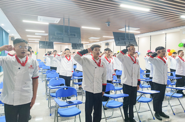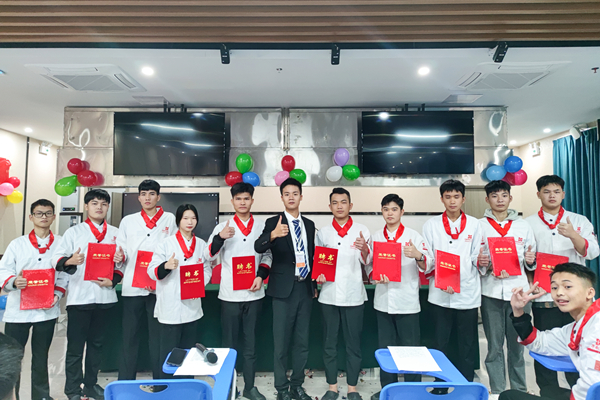 青春梦想在这里迎风起航,近日,广西华南烹饪三年粤菜大厨2105班举行开班典礼,班级主任、教务处老师和全体学子代表出席本次典礼。