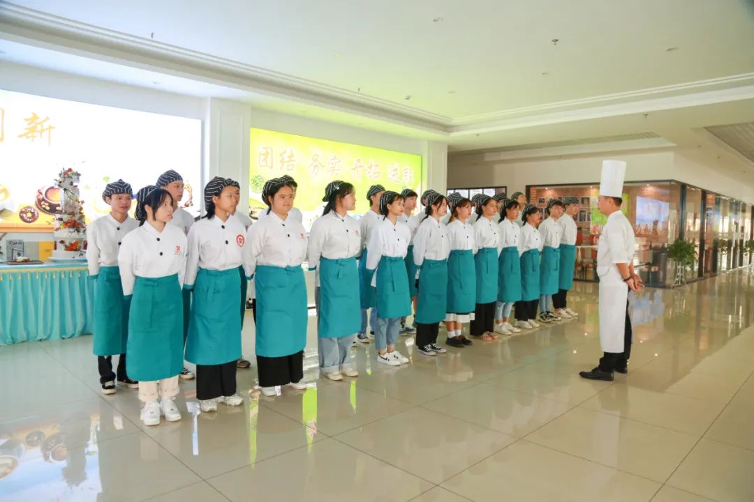 同学们穿戴好整齐的校服,宽敞的教室、先进的设备、新鲜的食物原料、老师一对一指导,这就是华南烹饪的西点课堂。