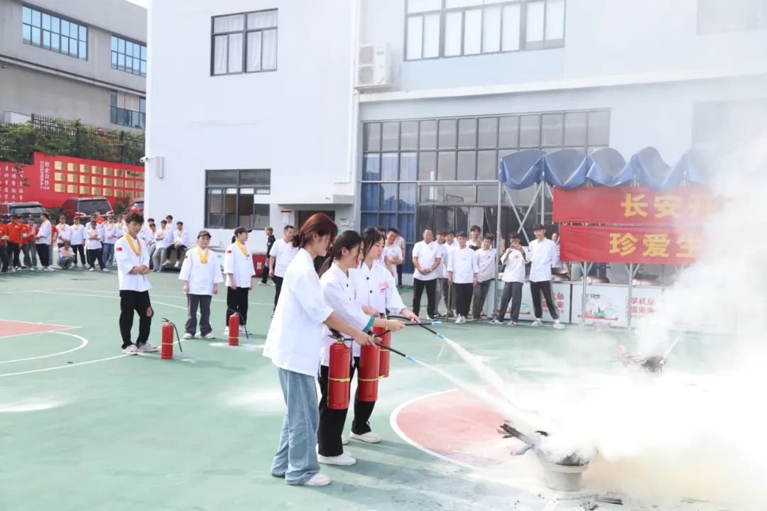 逃生演习结束,我校老师悉心地向同学们普及了消防安全知识和校园、家庭火灾防范知识,从火灾发生的根源防患于未然,并现场讲解灭火器的作用、灭火原理和使用方法,通过教学演示,让同学们学会如何正确使用灭火设备。