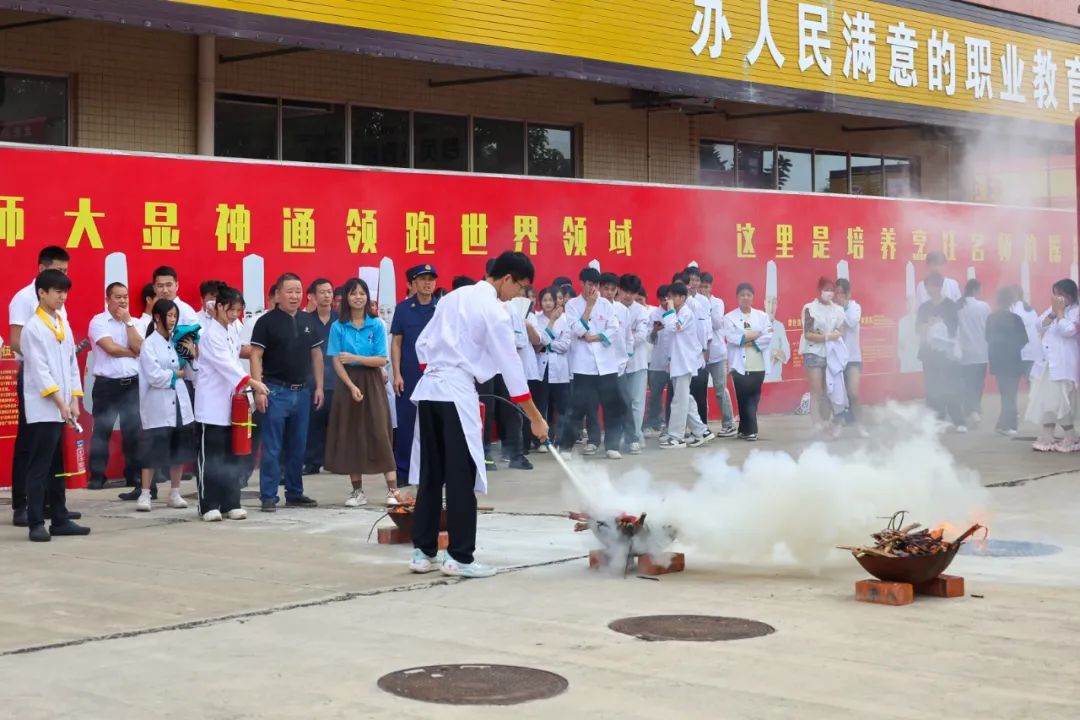 演练结束后,消防队员结合具体案例为同学们讲解了火灾的危害性以及消防的重要性,并现场讲解如何使用灭火器、消防栓和火灾初期灭火、自救等基本知识和技能。并邀请部分同学尝试使用灭火器灭火,大家积极参与,跃跃欲试。