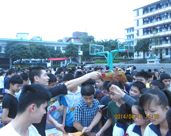 2014年4月,广西中职学校招生“大蓬车”组织50多所区内中等职业学校进行招生宣传。面对越来越强的竞争压力,中职院校期待用招生“大篷车”的形式走进初中学校进行宣传,让初中生了解中职院校。