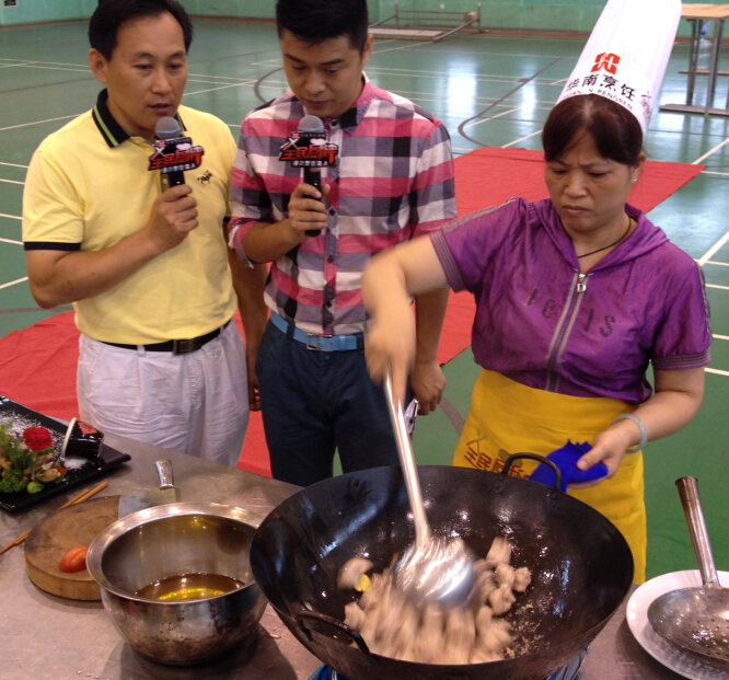节目的比赛现场高手的对决碰撞出了精彩的火花,参赛选手都使出了自己的看家本领,熟练的刀工,锅中的菜飞快的翻炒,……各种专业的动作应接不暇,经过激烈的比拼最后决胜出2人参与南宁复赛。