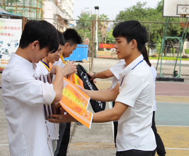 7月3日上午,广西华南烹饪学校大学路校区操场上热闹非凡,学校领导老师与同学们齐聚操场上隆重举行广西华南烹饪学校2014年趣味活动颁奖仪式。华南校区负责人朱伟、校区教务主任黄盛、后勤保障部宇翔、市场主任周应斌、网络部主管陶日高及学校老师代表出席颁奖仪式,一起分享了比赛后的丰硕成果和成功的喜悦。颁奖仪式由学生会谭顺捷老师主持。