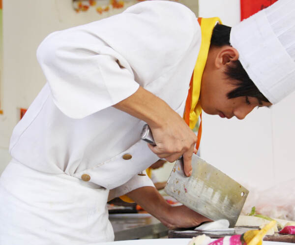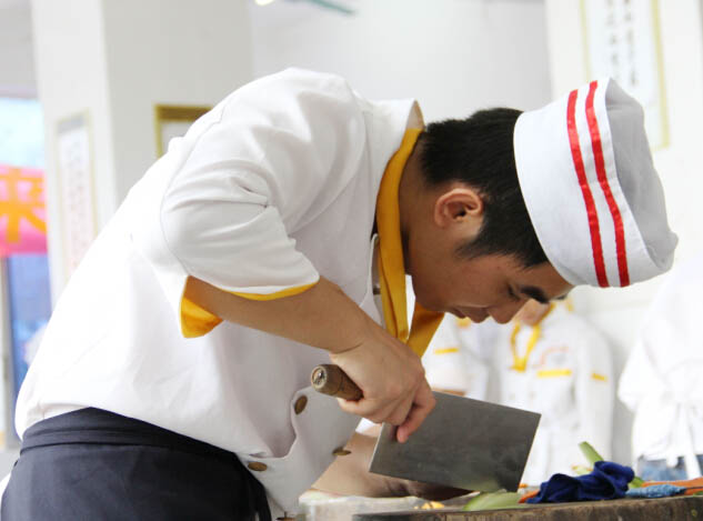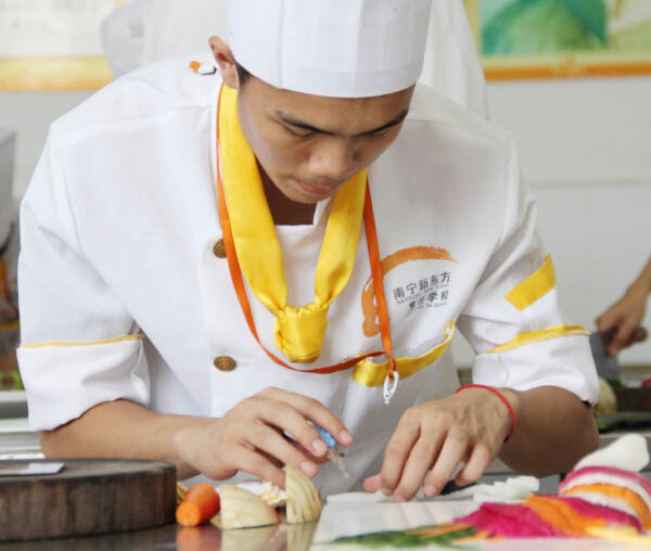 2014年7月11日,广西华南烹饪学校大厨精英137班的同学们在明亮的刀工厅里进行了拼盘阶段考核。学子们精彩的作品组成了一道靓丽的校园风景线。